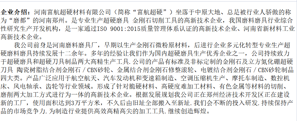 公司專業(yè)研發(fā)生產(chǎn)銷售各類金剛石滾輪、陶瓷CBN金剛石砂輪、電鍍CBN精密砂輪、CBN金剛石磨盤、五軸工具磨砂輪等超硬磨具制品.設(shè)備先進(jìn).工藝技術(shù)檢測過硬.替代進(jìn)口.歡迎您來洽談合作.