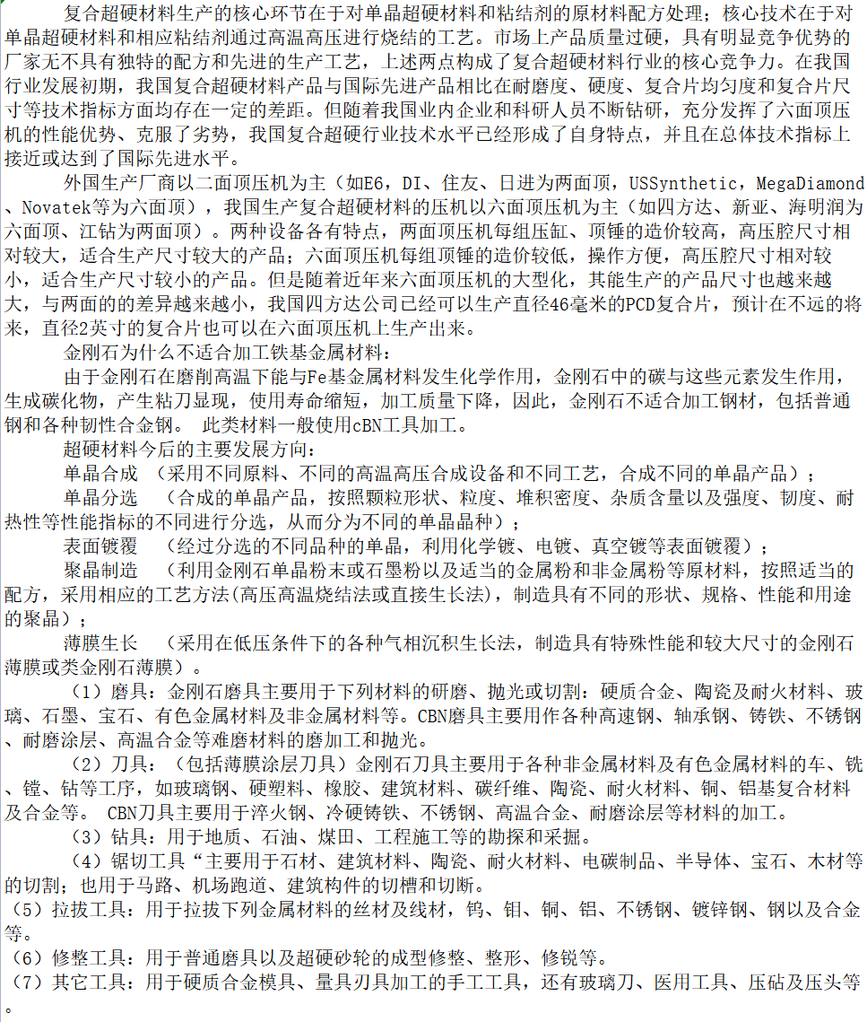 復(fù)合超硬材料行業(yè)技術(shù)現(xiàn)狀刨析